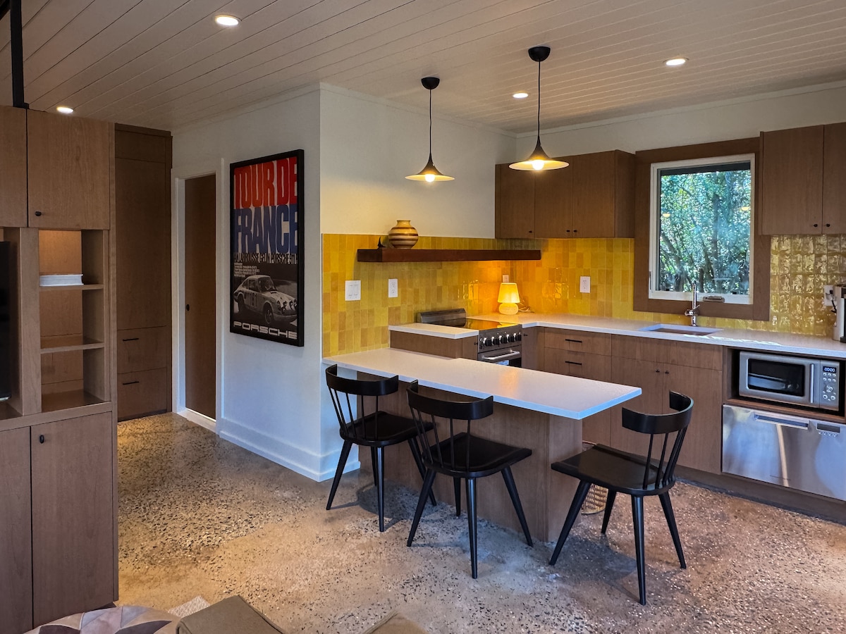 Bienvenue dans votre havre de paix, une suite privée conçue pour le confort et la détente. Niché dans un quartier serein et calme, cet espace offre l'évasion parfaite de l'agitation de la vie quotidienne tout en offrant toutes les commodités modernes dont vous avez besoin pour passer un merveilleux séjour. Un salon lumineux et ouvert avec un canapé qui se transforme en canapé-lit. La cuisine entièrement équipée comprend des appareils en acier inoxydable, une cafetière, un mixeur et un grille-pain, ce qui facilite la préparation de vos repas préférés.