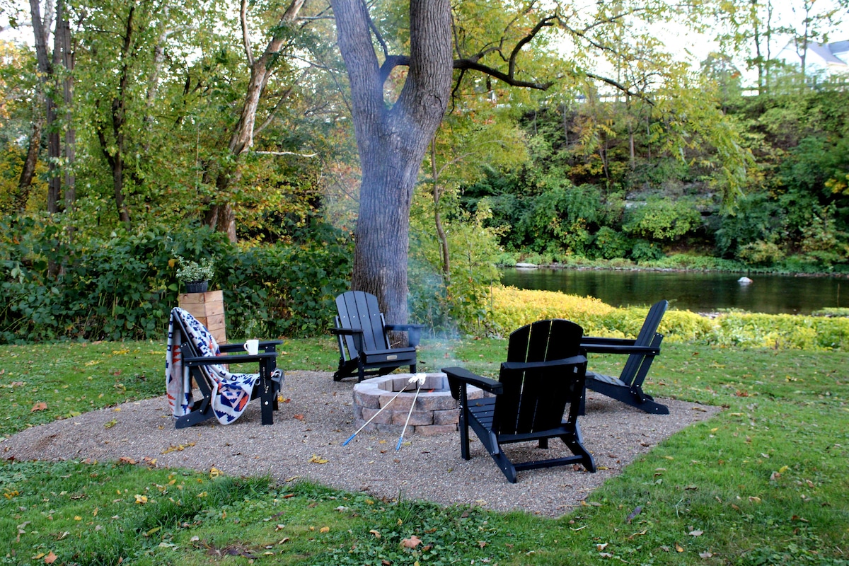 Un bel espace pour se détendre après une journée bien remplie. Ce chalet historique a été entièrement rénové et décoré dans un poulailler confortable mais épuré. Emplacement incroyable à quelques pas de Bucknell mais suffisamment proche pour marcher jusqu'au centre-ville pour le dîner. Le patio arrière paisible fait face à la rivière et aucune autre maison derrière elle. 3 chambres et 2 salles de bain : la maison peut accueillir confortablement 6 personnes. Les autres équipements comprennent l'air central, la cheminée au gaz, le wifi, une cuisine complète, une buanderie et de nouveaux matelas.