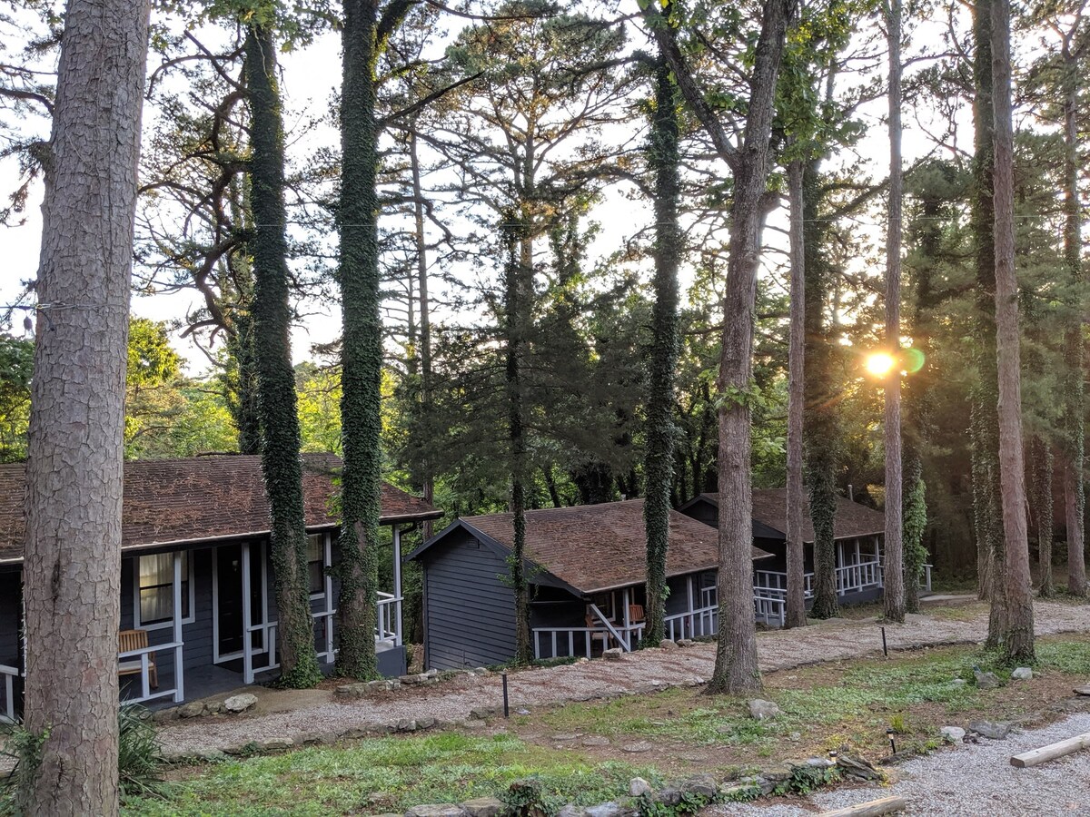 Cette cabane est nouvellement construite en 2022 avec un lit King Size et un jacuzzi privé extérieur. Avec un clin d'œil aux cabanes historiques que l'on trouve près des parcs nationaux. À quelques pas d'un sentier privé, la cabane dispose d'un lit King Size confortable. Les porches couverts vous permettent de vous détendre sous les pins quel que soit le temps. Équipements : télévision par câble, réfrigérateur et micro dans la chambre, cafetière, climatisation, parking sur place, feu de camp/hamacs communautaires. Les chiens sont les bienvenus moyennant des frais supplémentaires.