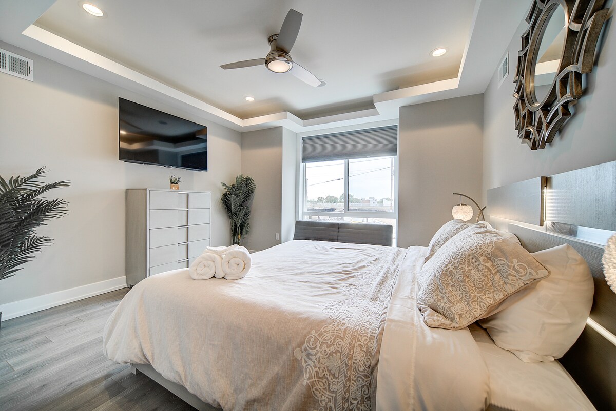 🚫 REMARQUE IMPORTANTE : LE CLIENT PRINCIPAL DOIT AVOIR PLUS DE 23 ANS ET PRÉSENTER UNE PIÈCE D'IDENTITÉ VALIDE AU MOMENT DE LA RÉSERVATION ! Veuillez ne pas réserver si vous prévoyez d'organiser une fête : une amende de 2 000 $ s'applique. ✨ Caractéristiques : • 2 téléviseurs de 65" + 1 téléviseur de 40" • Wi-Fi ⚡ haute vitesse • Lave-linge🧺/sèche-linge dans le logement • 🍳 Cuisine avec four + micro-ondes • Arrivée 🔐 autonome • Logement 🏡 privé dans un immeuble de 2 logements 📍 À proximité : • 🎤 The Met (0,5 mi) • Métro 🚇 Broad St. (3 pâtés de maisons) • 🏛️ Musée d'art et marches de Rocky (10 min)