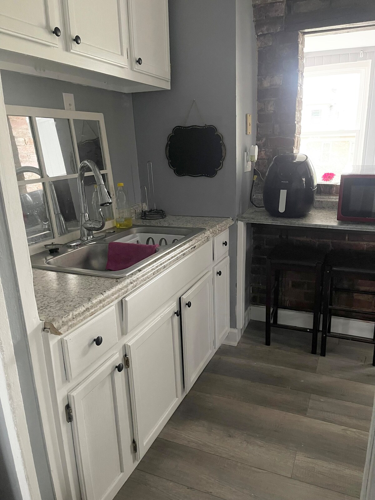 Détendez-vous dans ce charmant appartement d'une chambre avec cuisine et salon, ou profitez de l'espace extérieur partagé, y compris le porche avant et la terrasse au-dessus du garage. Nous avons ajouté un espace de travail dans la chambre avec un bureau et une chaise ! Notre maison historique en brique jaune se trouve à seulement 5 minutes en voiture ou 15 minutes à pied du quartier historique Gaslight de Clifton. Le campus de l'UC et le zoo de Cincinnati sont à proximité, ou vous pouvez facilement vous rendre à Over-the-Rhine ou au centre-ville de Cinci pour des concerts, des matchs des Bengals ou des Reds et la vie nocturne !