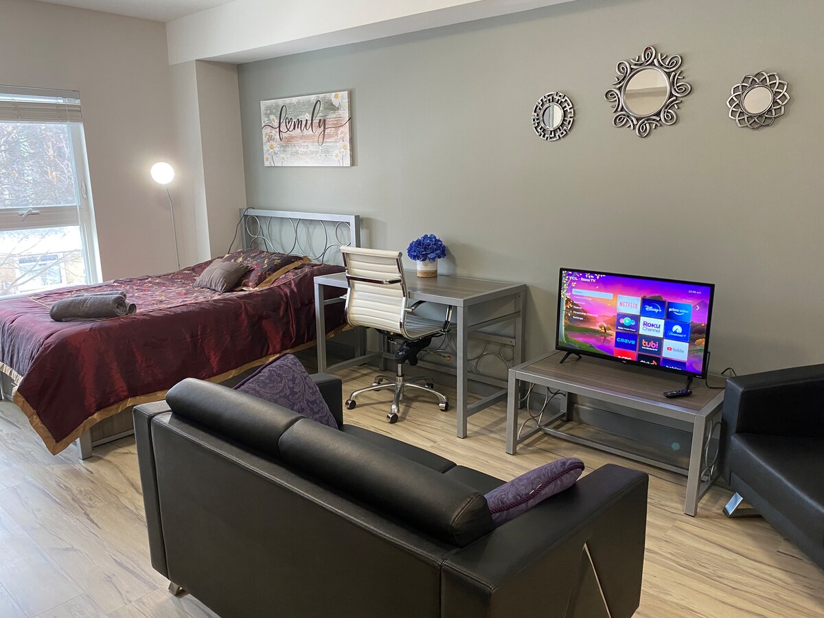 GRANDE RÉDUCTION DE 20 % POUR LES SÉJOURS AU MOIS Studio au rez-de-chaussée récemment rénové et décoré avec confort et style. L'espace comprend une cuisine entièrement équipée et une salle de bain 3 pièces. L'appartement est situé dans un quartier calme à proximité du marché fermier de St Jacobs, de la maison de jeu de St Jacobs, de deux universités, de magasins, d'arènes, d'une bibliothèque et de centres de loisirs. À moins de 8 km du Centre in the Square. L'hôte sera là pour vous accueillir et répondre à toutes vos questions.