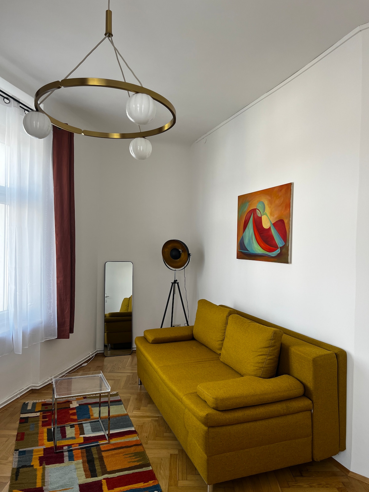Nous nous réjouissons de vous accueillir dans notre appartement récemment rénové et préparé avec beaucoup d'amour au deuxième étage d'un magnifique immeuble ancien en bordure du parc municipal de Graz. Notre appartement se compose d'une grande chambre, d'un salon spacieux, d'une cuisine, d'une salle de bain et de toilettes séparées. Depuis le salon, on voit dans la roseraie du café avec le meilleur petit déjeuner de la ville.