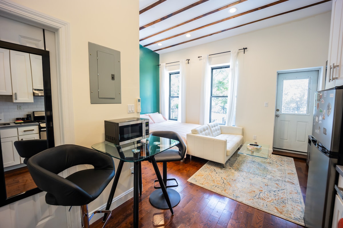 Bienvenue dans notre studio confortable ! Niché dans un quartier en effervescence, notre espace au design bien pensé offre confort et style. Profitez d'une nuit de sommeil reposante dans le lit moelleux, détendez-vous dans le salon moderne et savourez le café du matin sur le balcon privé. Avec un accès pratique aux attractions et équipements locaux, notre studio est le point de départ idéal pour votre séjour à seulement quelques minutes à pied de Central Park et des principales stations de métro. Réservez dès maintenant pour une expérience inoubliable au cœur de la nouvelle ville.