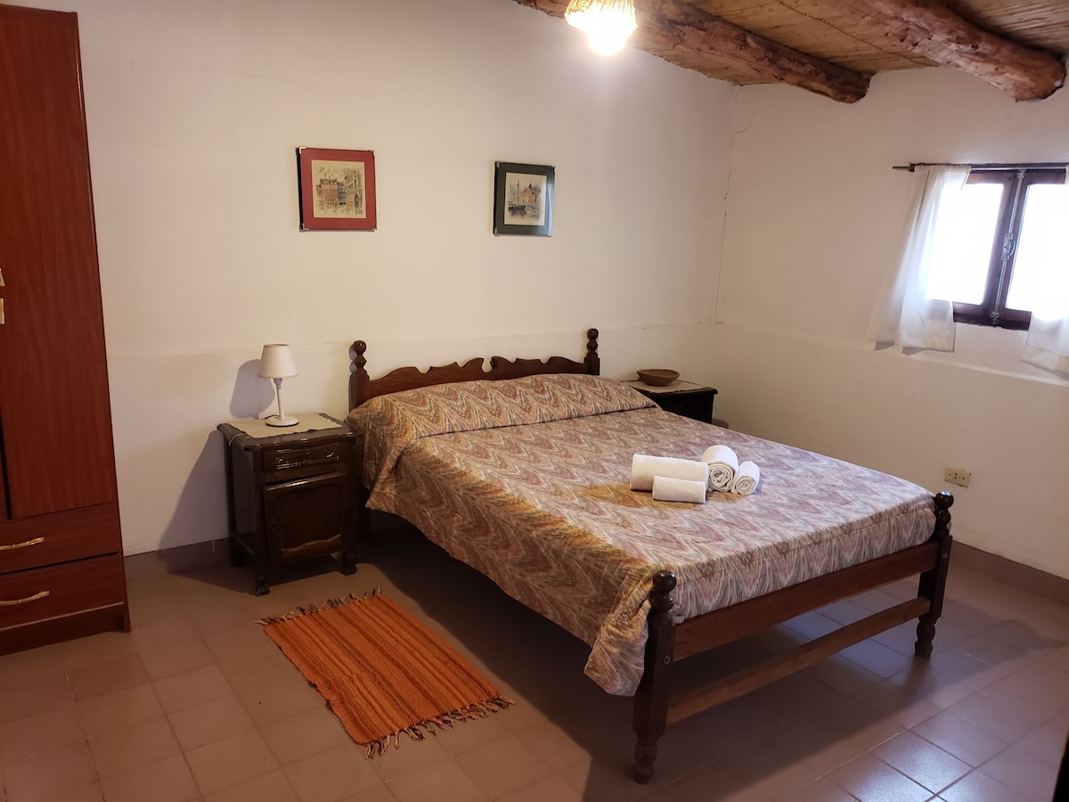 CHAMBRE TYPE REFUGE DE CAMPAGNE AVEC SALLE DE BAIN PRIVÉE située en pleine nature, nous le précisons pour que lorsque vous qualifiez l'EMPLACEMENT, vous sachiez qu'elle est entourée de collines et à 800 mètres du centre. Vues uniques sur la Quebrada. Lit double ;draps,serviettes et couvertures. Table,chaises et éléments pour préparer un petit déjeuner, anafe uniquement pour le chauffage,bouilloire électrique,réfrigérateur, vaisselle.parking libre,couvert,non fermé. wifi. chauffage. Cour avant et vaste environnement sauvage andin : arbres de churqui, saules, etc.