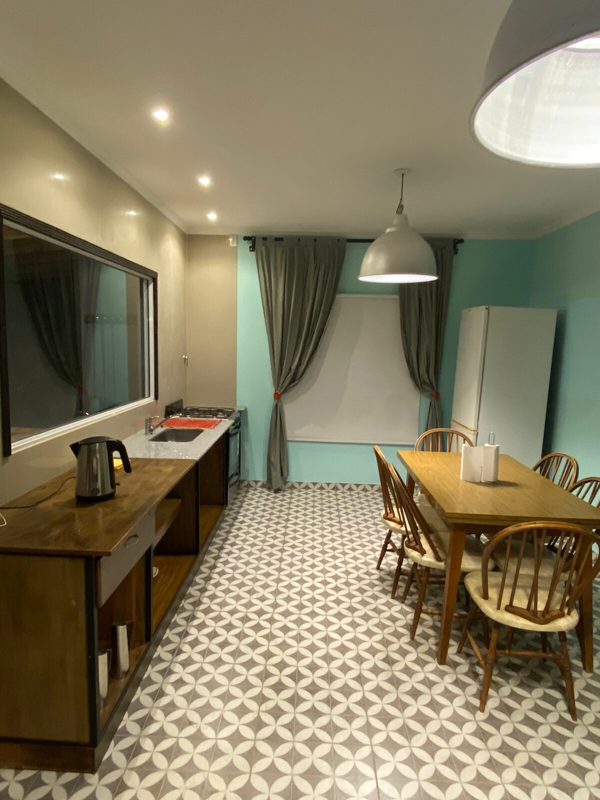 Logement type loft. Un seul environnement intégré, très spacieux, avec cuisine, salle à manger, salon et chambre. Il dispose d'une petite buanderie séparée en plus de la salle de bain. Idéal pour deux personnes, avec la possibilité d'ajouter une place pour un enfant. Situé dans un nouveau quartier calme, avec un grand parc pour voir le coucher du soleil. Détendez-vous dans ce logement unique et calme.