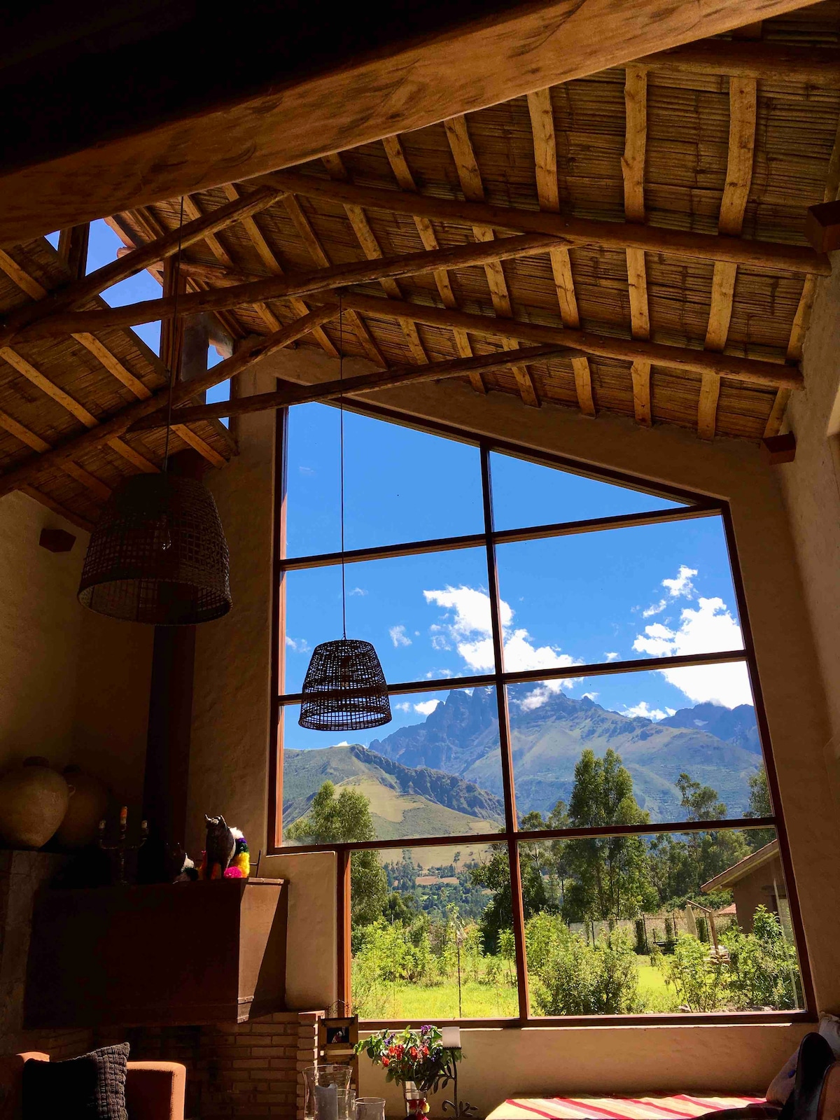La mejor vista de todo el Valle Sagrado hacia los glaciares Andinos! Si deseas paz, tranquilidad y descansar lejos del bullicio del Valle Sagrado pero al mismo tiempo poder visitar todos los atractivos de la zona, esta casa es tu paraíso. Nuestra casa está 100% ecológica, muy bien ubicada a pocos minutos de Maras y Urubamba y en un sitio muy tranquilo para disfrutar de la naturaleza. La casa recolecta el agua de la lluvia y se mantiene caliente de forma natural. Está construida naturalmente.