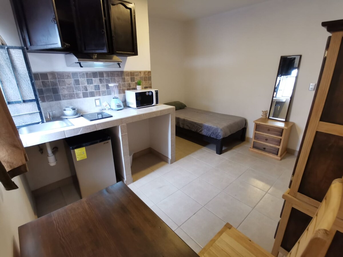 Procéta de la chaleur de cet hébergement calme et central. Avec tout le nécessaire pour que votre séjour soit agréable, que vous voyagiez pour affaires ou pour le plaisir. nous avons une chambre avec salle de bain et kitchenette équipée, Internet inalambico et poste de travail à l'intérieur Proche de tout... Marchés, Églises, Hôpitaux. Restaurants, à quelques pas des transports en commun. 8min à pied du centre-ville. Ou 6 pâtés de maisons 15 min à pied du parc national.