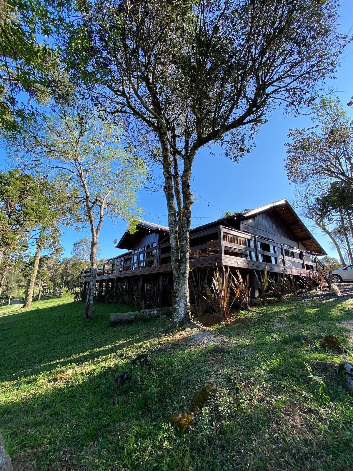 Construit en pleine nature, entouré de magnifiques araucarias, avec un lever de soleil spectaculaire, et au bord d'un lac, nous sommes situés à 1 250 mètres d'altitude et à 11 km de la ville. Un véritable refuge pour ceux qui recherchent le calme et la tranquillité en pleine nature. Piscine ; équitation ; terrain de football et de volley-ball ; pêche et remise à l'eau ; pédalo sur le lac ; sentier et aire de jeux pour les enfants. Maison entièrement équipée avec une cheminée, avec wifi et netflix et prime video disponibles.