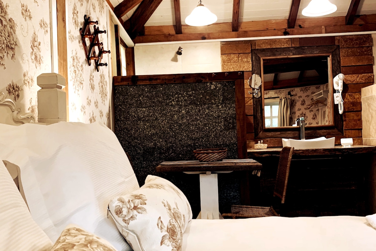 Cabanes de 82 m² avec 2 suites complètes et confortables dans un endroit calme dans la nature, mais à proximité à 3 km du centre commercial et des plantations. Cuisine avec réfrigérateur, cuisinière, four, micro-ondes, table à manger, barbecue et tous les ustensiles de cuisine de base, y compris les tasses. Suites avec climatisation chaud et froid, armoires, linge de lit et de bain Altenburg et vue sur la nature. Salon avec canapé, télévision 32" avec chaînes câblées, Wi-Fi de qualité et chauffage.