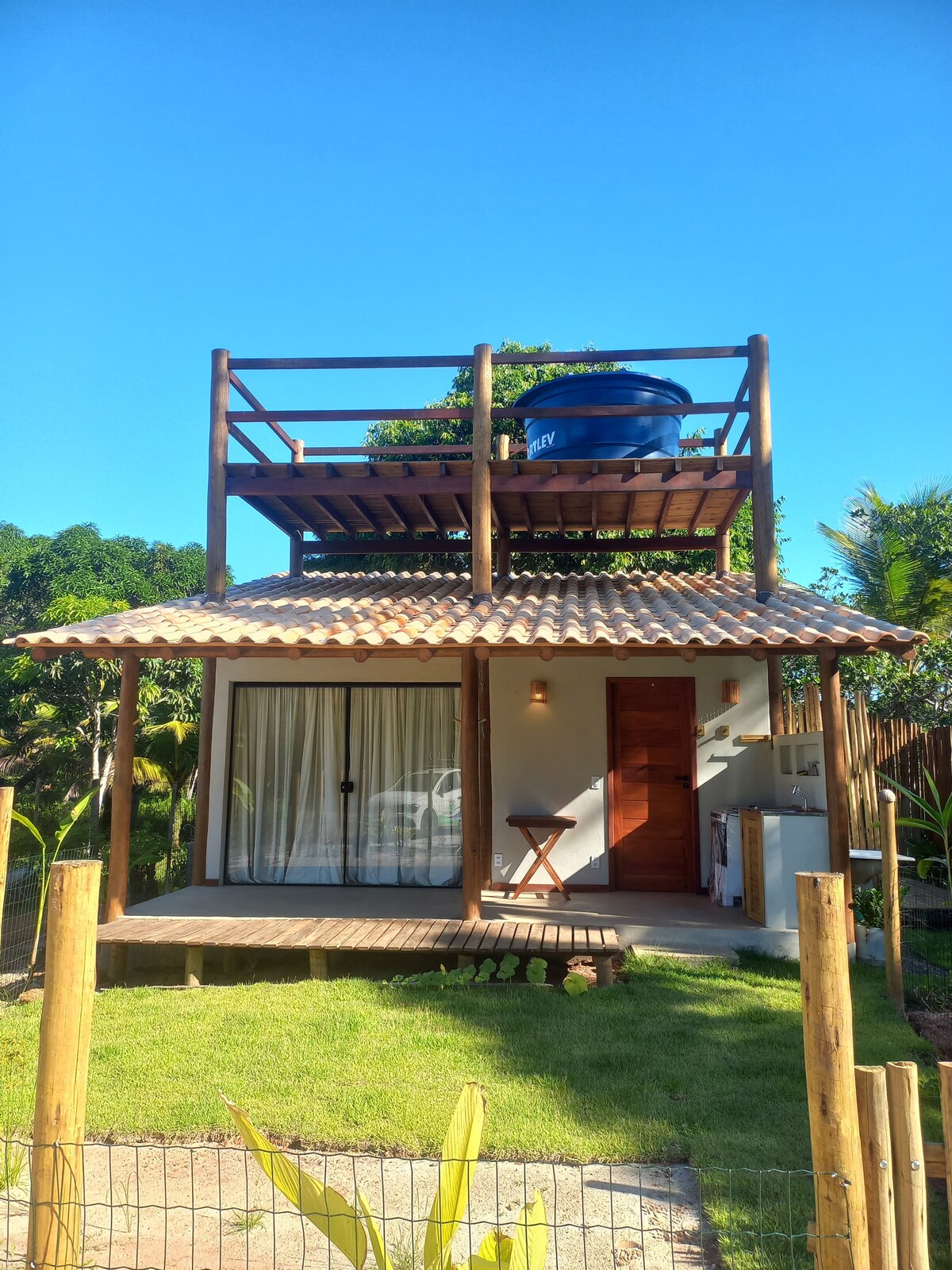 Charmante maison de 3 chambres, 2 chambres avec lits doubles et 1 chambre avec 2 lits simples, pouvant accueillir confortablement 6 personnes. Dans un appartement en bord de mer à Praia do Pé de Serra, Serra Grande/BA. À quelques pas du sable, avec climatisation, Wi-Fi fibre, cuisine équipée, TV, espace gourmet avec barbecue, jardin avec chaise longue, douche et hamacs sur le balcon. Style moderne et confortable, idéal pour les couples ou les familles à la recherche de confort, de tranquillité et de contact direct avec la nature.