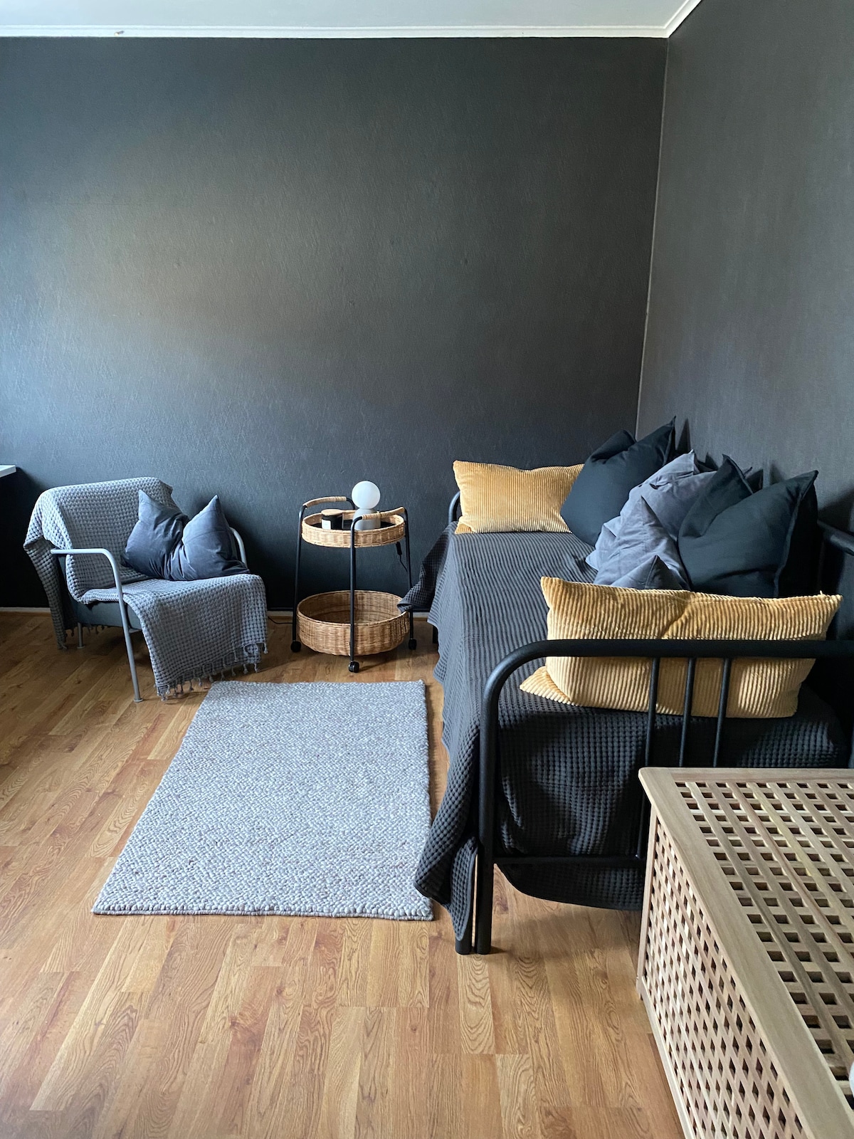 This second-floor apartment is in an excellent location in Nordnes, Bergen. It is in the heart of the city, just a five-minute walk from all the city's popular attractions. It is well-equipped with modern amenities. The neighborhood is clean, peaceful, and has minimal traffic, making it an ideal place for a short or longer stay in the city. Parking facilities, a café and bistro, a grocery store, a bakery, and a bar within walking distance add to the overall appeal of the apartment.