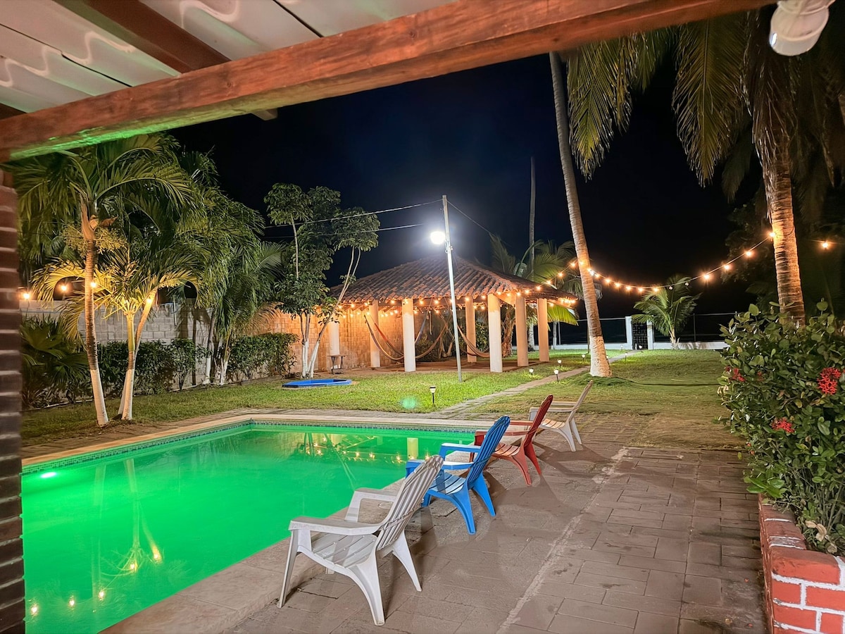 Bienvenue à Garden Beach ! Plongez dans la sérénité côtière dans cette charmante maison au bord de la plage. Avec 4 chambres, chacune équipée de la climatisation pour votre confort, et six lits confortables pour un repos réparateur. Avec 2 salles de bains extérieures et 2 salles de bains intérieures. Profitez de la piscine cristalline, conçue pour les adultes et les enfants. De plus, l'accès privé à la plage. NOUS N'AUTORISONS PAS LES ÉVÉNEMENTS. RESPECTER LES RÈGLES ÉTABLIES. RESPECTER LE NOMBRE D'INVITÉS.