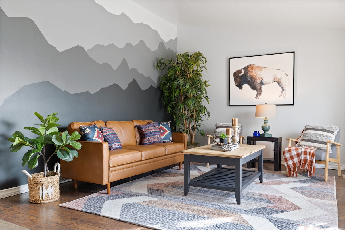 Cette maison de plain-pied avec entrée privée offre plus de 3 000 pieds carrés d'espace privé. Inclus dans votre maison de vacances : quatre chambres avec une immense suite parentale et une baignoire jacuzzi. Grande cuisine gastronomique de style ferme. Deux salons. Coin jeux pour enfants et sièges extérieurs privés chauffés avec gril. Les équipements comprennent Wi-Fi, Google Chromecast pour le streaming Hulu, Netflix, Disney Plus et bien plus encore. Petit-déjeuner et collations gratuits, dépôt facultatif des bagages avant l'enregistrement.