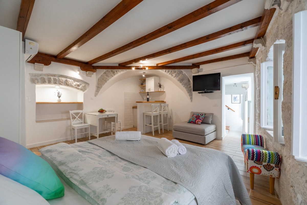 Le studio récemment rénové est situé au cœur de la vieille ville de Korcula. Le studio offre le meilleur de cette ville fortifiée de la Renaissance : à 1 minute à pied de la la cathédrale Saint-Marc et le musée de la ville, la plage des remparts de la vieille ville et, enfin et surtout, la possibilité de choisir parmi les meilleurs restaurants de Korcula. L'appartement a été rénové pour refléter la disposition originale du XVIIIe siècle ; veuillez noter que les gens à l'époque ne vivaient pas dans de grands espaces :)