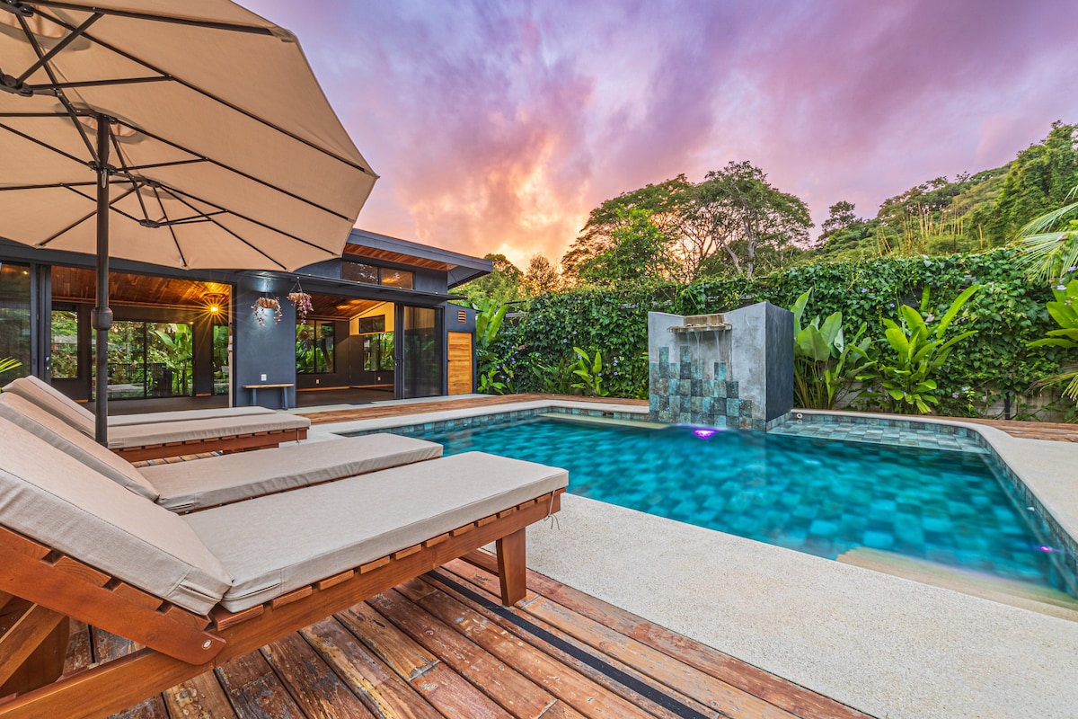 📌 Évadez-vous dans une maison moderne de 2 chambres à Dominical avec vue sur l'océan, piscine privée, climatisation, WiFi et parking pour deux véhicules. Cette retraite paisible dispose d'un bureau dédié, d'espaces de vie ouverts et d'un environnement tropical luxuriant. À quelques minutes de la plage, des restaurants et des spots de surf, profitez de l'intimité, du confort et du meilleur de la côte pacifique du Costa Rica, parfait pour les couples, les familles ou le travail à distance au paradis.✨