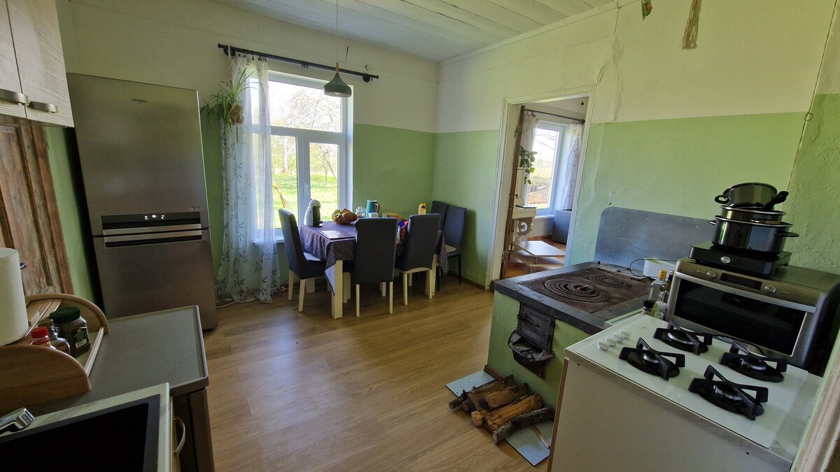 Miers, plašs dārzs ap māju, īsas pastaigas atālumā ezers. Māja kurināma ar krāsnīm un tajā ir pat divi mūrīši uz kuriem apsēsties un ziemā pasildīt dupsi :) Virtuvē ir gan kurināmā plīts ēdiena gatavošanai uz dzīvās uguns, gan arī gāzes plīts. Četras istabas no kurām 3 var izmantot kā izolētas guļamistabas un ceturtā ir centrālā atpūtas istaba, kur pasēdēt šūpuļtīklā un baudīt skatu pa plašo logu. Atpūties viens vai kopā ar visu ģimeni un mājdzīvniekiem šajā mierīgajā lauku mājā.