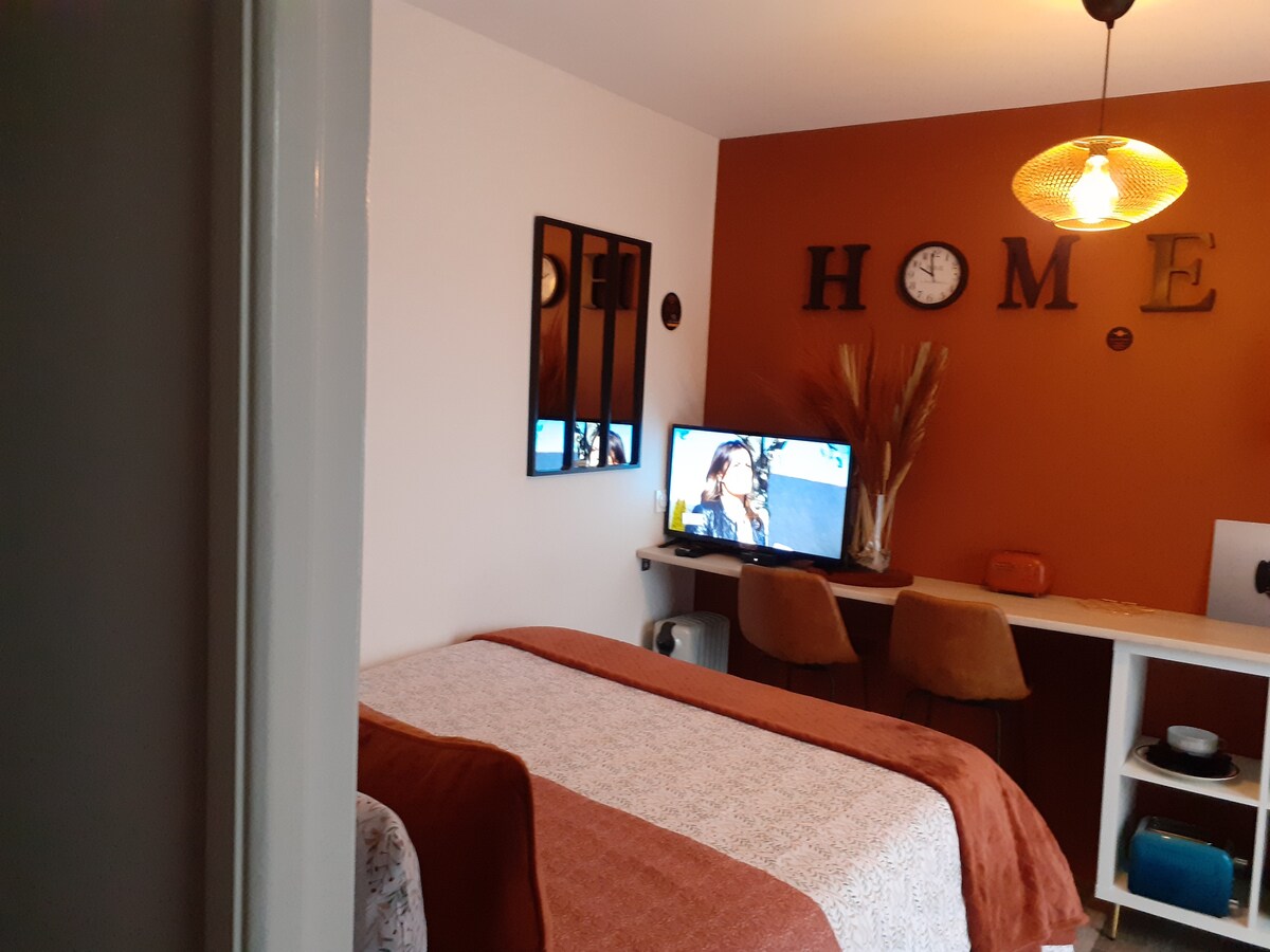 Oubliez vos soucis dans ce logement spacieux et serein avec une déco très design. une chambre tout confortable. avec douche privative. frigo, bouilloire, micro onde, grille grille-pain. couvert,assiettes cuillères, fourchette, etc Le logement n’est pas adapté pour 2 voyageurs ni les couples , merci de respecter ce règlement. Les visites ne sont pas acceptés.