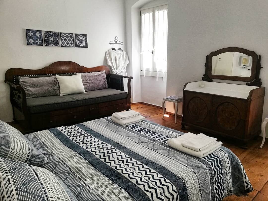 La camera è luminosa, l'atmosfera rilassante e tranquilla. Gode di una bella vista sul giardino, la valle e le montagne del versante orobico. La casa è situata tra le vigne a terrazzi del dosso della Maroggia, sul versante retico della media Valtellina: luogo isolato e lontano da mete eccessivamente turistiche quanto basta per garantire il giusto relax, permette di raggiungere in poco tempo il fondo valle e le valli circostanti, mete di trekking o semplici immersioni nella natura.