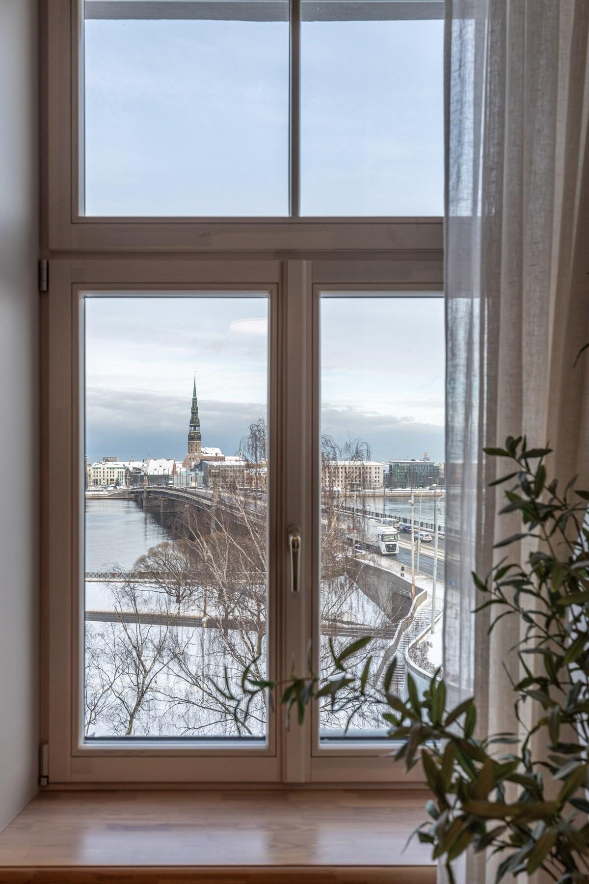 Welcome to discover the UNESCO heritage building in the center of Riga in a safe part of the city. A historic building of 1909 built by famous Latvian art-nouveau architect E. Laube. Modern and cosy flat on the 6th floor with a sunny terrace and a stunning view. It's located 20 min on foot from the Old Town, 15 min from the Central Market .You have all the facilities nearby including gym, grocery store & french boulangerie "Cadets de Gascogne" in 2min walk.