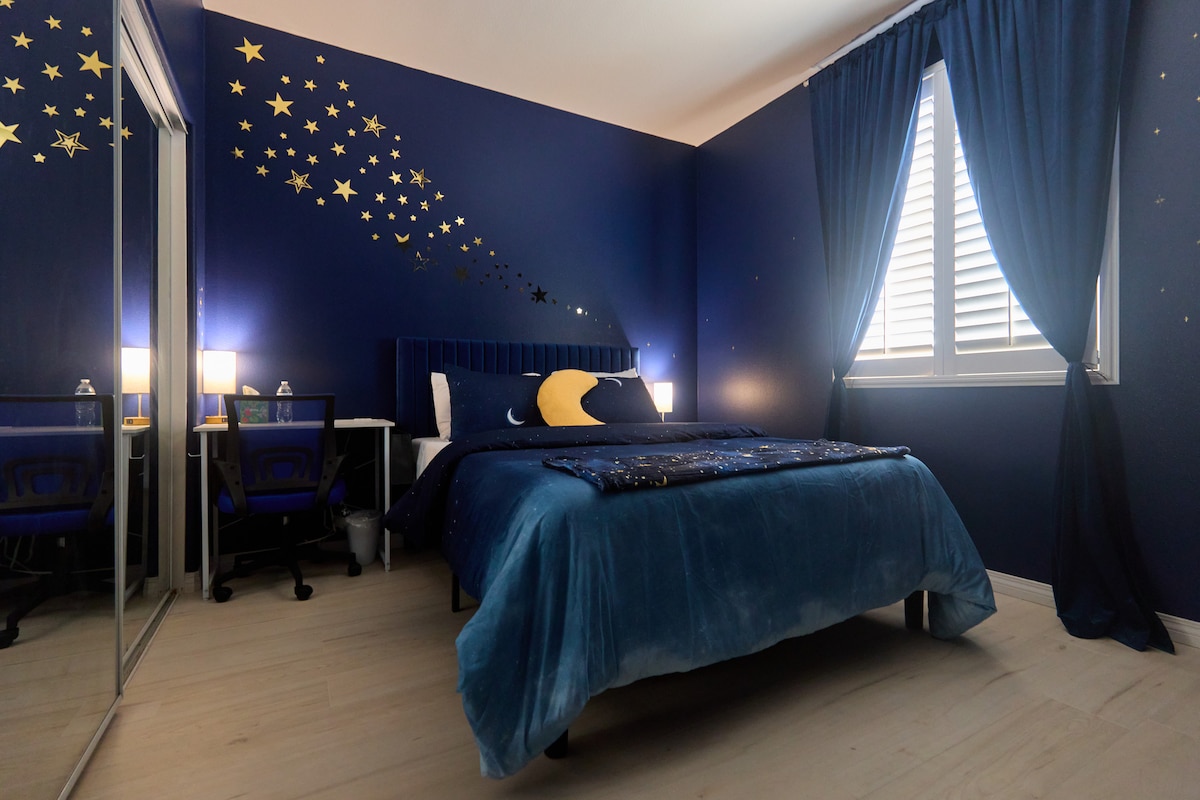 Cette annonce concerne un appartement privé d'une chambre et d'une salle de bain. Si vous êtes intéressé par un appartement privé de deux chambres et deux salles de bain, veuillez consulter notre autre annonce ! Supprimez simplement l'espace entre le « . » et le « com ». airbnb.com/h/two-bed-two-bath-in-valencia Luxueux appartement en copropriété au dernier étage au cœur de Valence avec accès aux équipements du complexe de vacances ! Situé à moins d'un mile de Six Flags et à distance de marche du centre commercial Westfield, du cinéma Regal, des magasins, des restaurants et des bars.