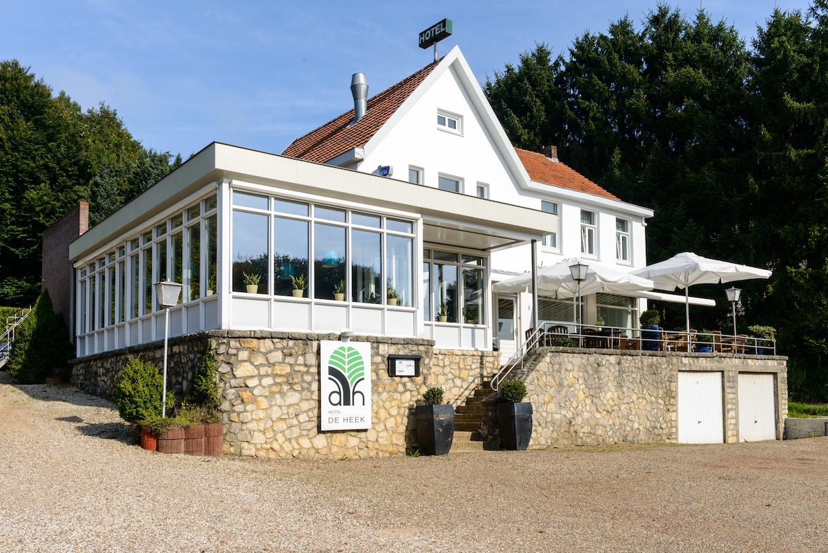 Spacieuse suite confortable avec entrée privée et salle de bain spacieuse avec douche à l'italienne et douche à effet pluie. La suite offre une vue magnifique sur la zone de randonnée naturelle de l'étage et se trouve à distance de marche du centre confortable de Valkenburg. La chambre est pleine de confort et équipée d'un merveilleusement grand sommier à ressorts (180x210) * Entièrement corona-proof . Enregistrement sans contact possible si vous le souhaitez. * Un petit déjeuner complet peut être réservé pour 15 € par jour.