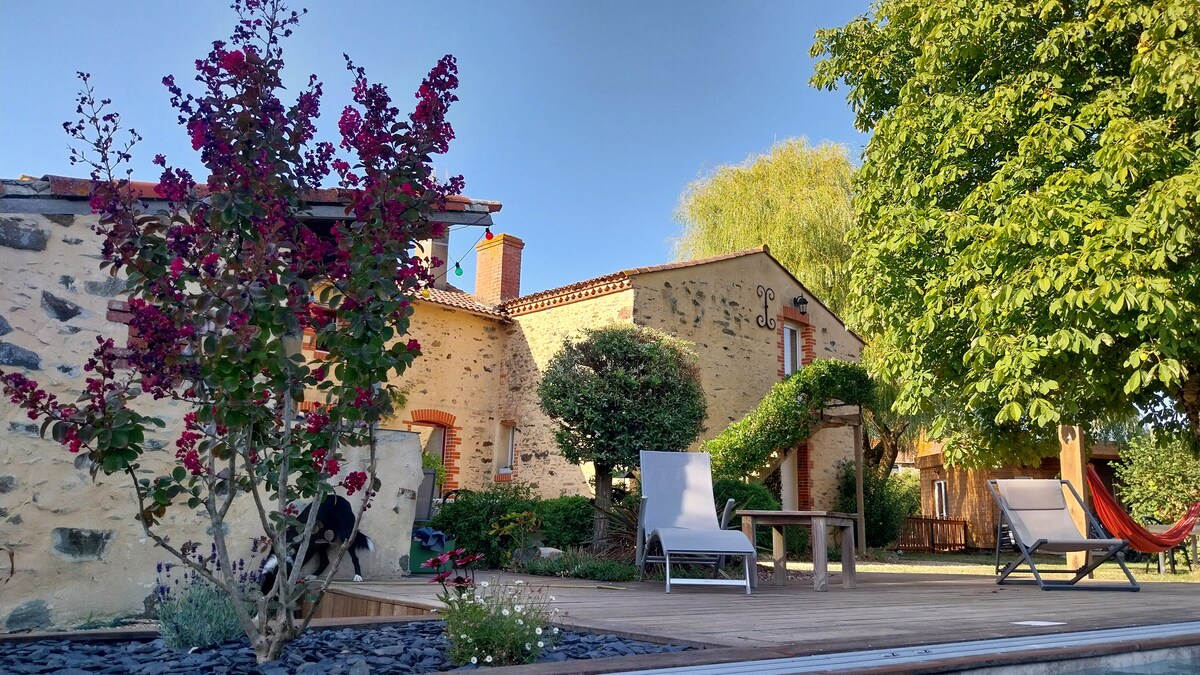 Laissez vous séduire par notre maison située au calme d'un hameau , mais à 5 minutes de toutes les commodités et services du centre ville. Tout près des axes principaux qui desservent la cote vendéenne et les îles , il ne vous faudra que 50 minutes en voiture pour aller vous baigner , 15 minutes pour randonner dans le vignoble du muscadet, 40 minutes pour visiter Nantes , le Hellfest , pour les plus courageux 1 petite heure pour vous rendre au puy du Fou ,...