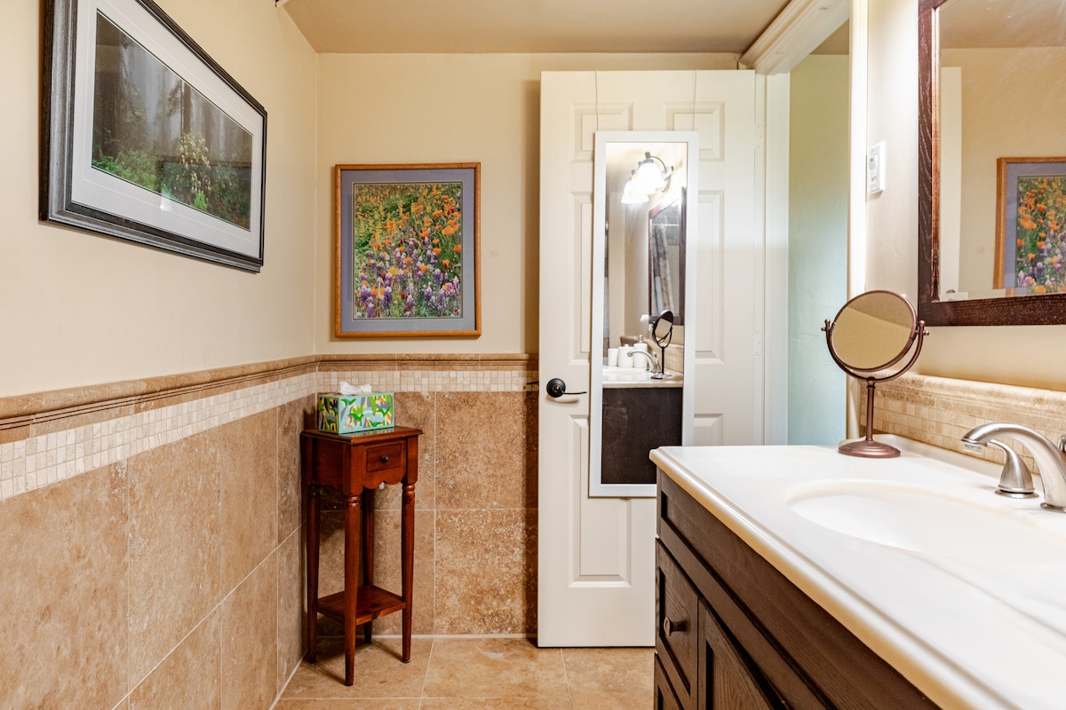 Bienvenue dans une oasis privée. Déconnectez et renouez avec la nature dans un cadre paisible au cœur d'un magnifique paysage naturel. Notre suite d'hôtes de style champêtre dispose d'un lit queen size et d'un lit simple en option pour un troisième voyageur. Ne convient pas aux bébés. Kitchenette avec mini-réfrigérateur, cafetière, plaque de cuisson et micro-ondes. Café, thé et eau purifiée sont fournis. Salle de bain et douche privées. À l'extérieur se trouve un patio privé avec une chaise longue et des espaces pour s'asseoir. À proximité d'épiceries, de restaurants, de caves et de casinos.