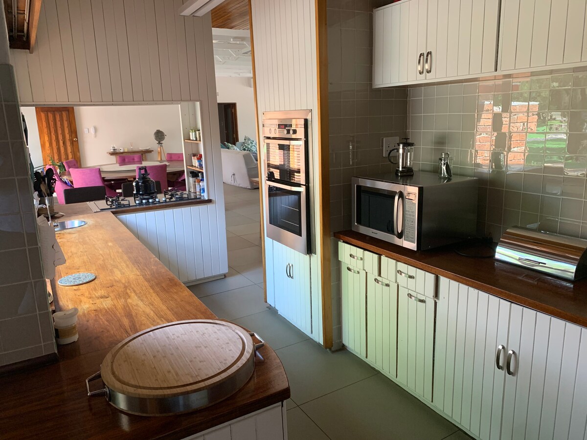 Bienvenue dans notre ferme, un lieu de retraite accueillant spacieux parfait pour les familles et ceux qui recherchent une escapade paisible. Située à seulement 15 min du centre Walkerville et du Magic Garden Centre (zoo pour enfants), notre maison offre un mélange parfait de tranquillité rurale et de commodité moderne. L'extérieur est un paradis pour les enfants avec une balançoire, un toboggan et une cabane dans les arbres. Pour une expérience sud-africaine authentique, profitez du braai et du brasero. Presque entièrement alimentée à l'énergie solaire, la maison offre un séjour pratique et respectueux de l'environnement.