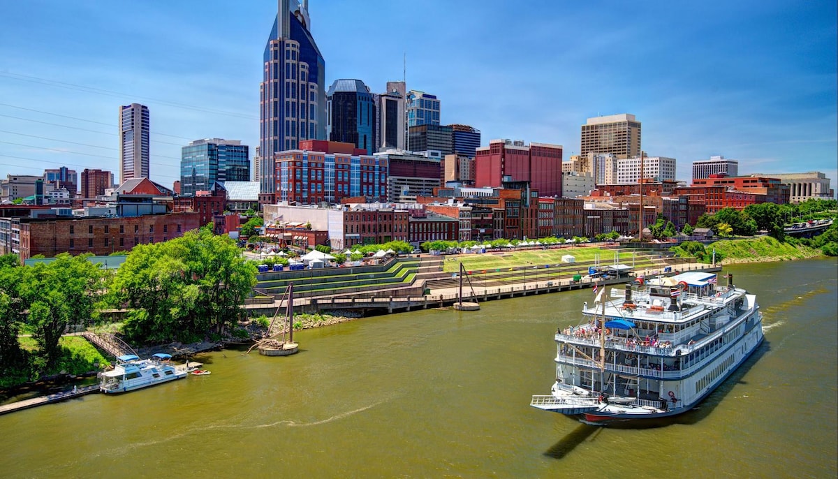 Détendez-vous dans cette belle suite penthouse du centre-ville de Nashville ! Ce complexe est situé à distance de marche de Broadway, de la Bridgestone Arena et du centre des congrès. Le complexe offre des équipements tels qu'une piscine d'eau salée sur une terrasse ouverte sur le toit, un salon avec vue panoramique sur la ville et une salle de sport entièrement équipée ! L'unité est isolée au dernier étage, vous pouvez donc profiter de l'intimité pour passer du temps avec vos proches ou utiliser notre espace de travail dans l'unité !