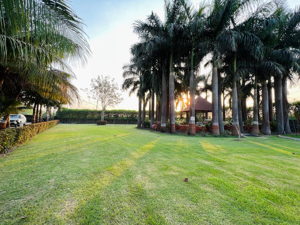 Villa de luxe au cœur du paysage naturel à 10 minutes de Navsari. Comprend une piscine et de grands jardins, ce qui rend l'endroit idéal pour faire la fête (ou une escapade paisible et pour pas plus de 5 à 6 personnes) avec vos amis ou votre famille pendant le week-end. La villa à l'intérieur d'une ferme développée peut être utilisée pour se réunir. Oui, une villa entière sera donnée. Pas d'autres voyageurs. Piscine privée. Le restaurant le plus proche serait de 10 minutes. Swiggy et Zomato livrent. À 12 minutes en voiture de Navsari.