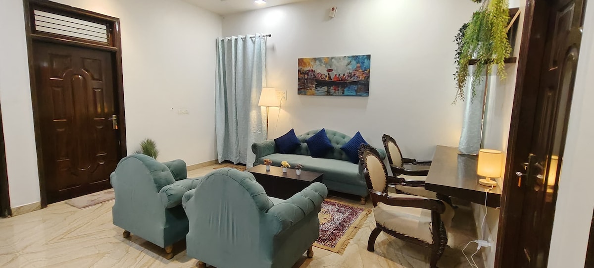 ✨Entire Modern 1BHK Apartment in Central Varanasi located in a safe, peaceful residential area, far from the chaos of traffic, surrounded by an open environment. We provide reliable local transport (auto or toto) 24 hours at a reasonable cost on demand at your doorstep for visit. ✨ Stay in comfort and style at our thoughtfully designed apartment, just a 10-minute ride to Assi Ghat – the cultural and spiritual heart of Varanasi. Ideal for families, friends, or small groups of upgto 4 guests.