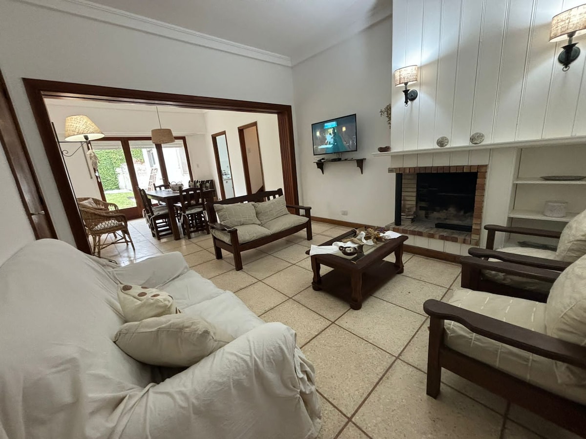 Maison au centre du quartier Los Troncos, endroit très calme, idéal pour la famille, au coin (à 20 mètres) il y a un poste de sécurité. LA maison est située à 6 pâtés de maisons de Güemes, 6 pâtés de maisons de la plage Varese, 6 pâtés de maisons d'Alem et 8 de Playa Grande. Il se trouve à 3 minutes en voiture du Club de Golf. Il n'INCLUT PAS UN ENSEMBLE de SERVIETTES et de DRAPS. LES GROUPES DE JEUNES NE SONT PAS ACCEPTÉS.