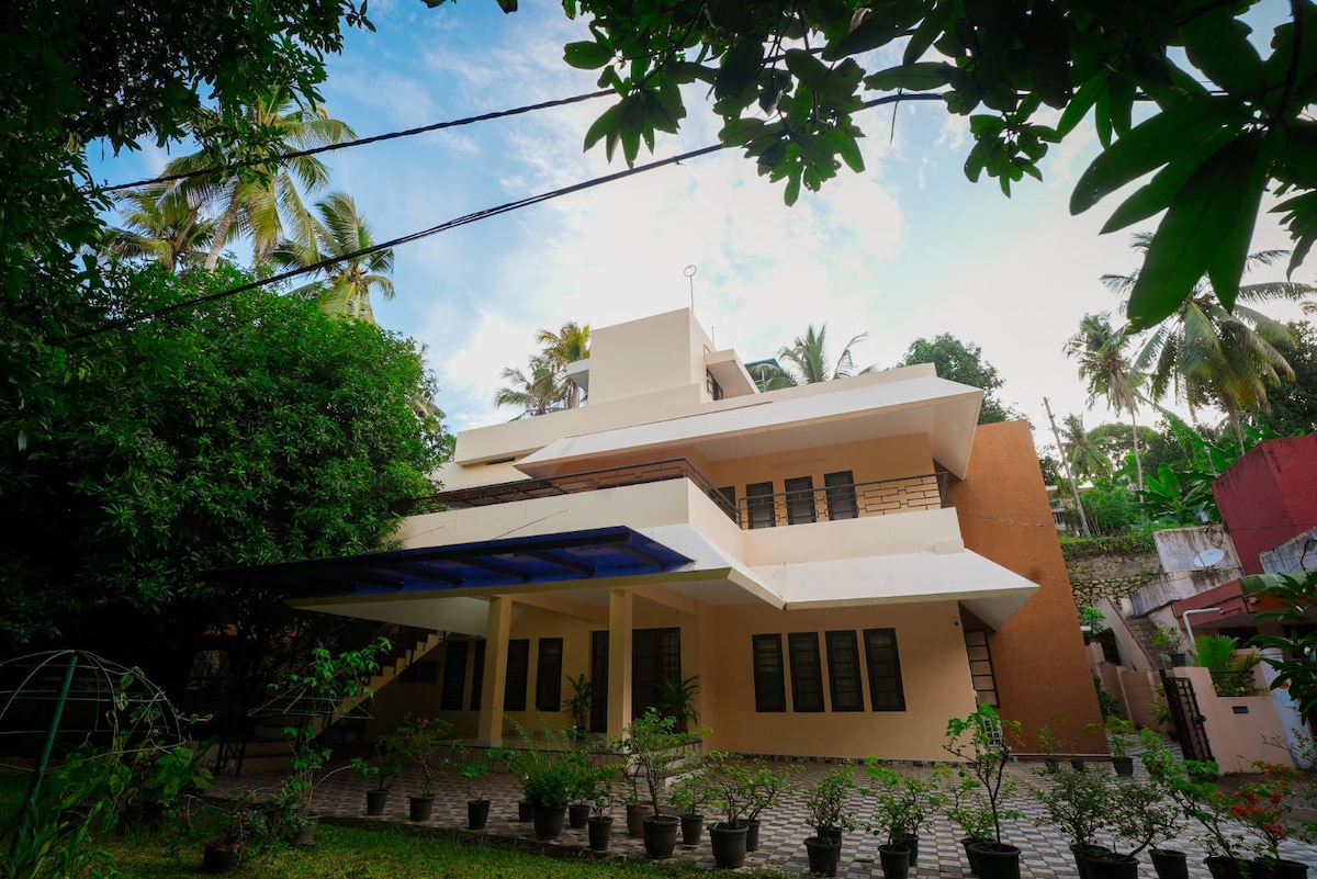Relax with the whole family in this serene peaceful home away from home. Location convenience: 100 m from world-class hospital complex Kim Health, 5 Km from Trivandrum Central Railway Station & Bus Station, 3km from the airport, 1km from Lulu Hypermarket, and 5 Km from Technopark the hub of IT companies in Trivandrum. Akkulam backwater and tourist Village is about 2 km from this property. This place is unique because both the bedrooms have picturesque postcards and scenic views through windows.