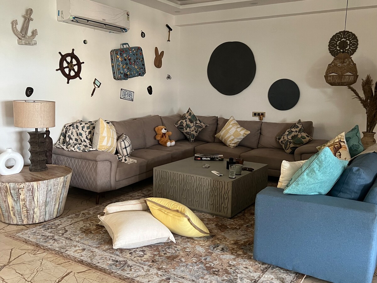 Séjournez dans notre spacieuse retraite de 2 chambres avec vue sur le parc, à 8,5 km des aéroports et à 15 min en voiture du métro. Profitez de balcons aérés, de vues sur le parc, de lits en acajou/bois, d'une cuisine entièrement équipée, d'une connexion Wi-Fi haut débit, d'une télévision connectée, d'articles de toilette gratuits et de recommandations locales. Savourez des repas faits maison, explorez le marché et les centres commerciaux à proximité et détendez-vous sur les pistes de jogging sereines. Découvrez une hospitalité haut de gamme avec une arrivée et un départ flexibles, des services de blanchisserie et des transferts aéroport en option. Réservez dès maintenant pour un séjour inoubliable à Delhi !