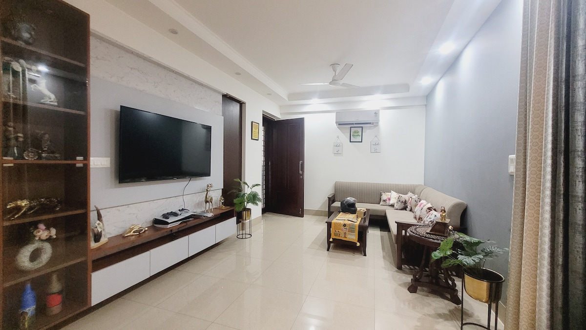 Bienvenue dans notre oasis confortable au cœur de New Delhi ! Situé dans une communauté fermée haut de gamme et calme avec une sécurité 24h/24 et 7j/7, la commodité est essentielle car elle est proche de l'aéroport, des hôpitaux, des centres commerciaux et de nombreuses attractions touristiques de Delhi. Il est également entièrement équipé avec une connexion Wi-Fi haut débit, une télévision intelligente, des purificateurs d'air et d'eau et une cuisine entièrement équipée. En tant que Delhi-ite et voyageur passionné, je peux également vous recommander plusieurs activités amusantes qui rendront votre expérience de la ville vraiment spéciale.