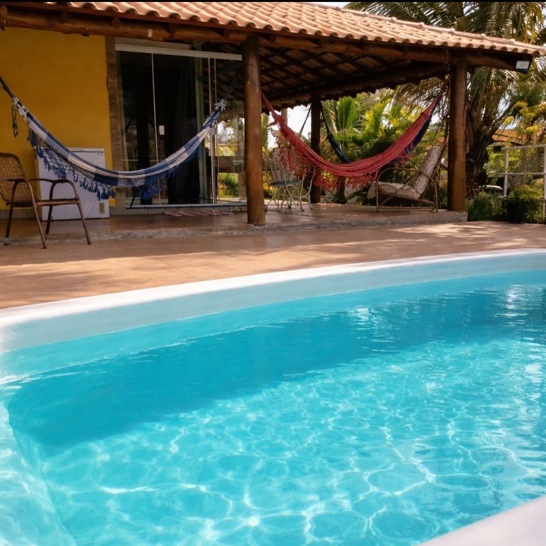 Détendez-vous avec toute la famille dans ce logement calme. Maison 2 chambres, salon, salle de bain et cuisine (annexe avec grande table pour repas). Espace extérieur avec piscine, barbecue, congélateur, jardin avec arbres fruitiers. Salon avec table de billard et hamac. Quartier proche du centre-ville (10 min en voiture). Proche également du lac Javari. Il y a un lac très proche de la maison (B. Retiro das Palmeiras), bon pour la marche. Endroit parfait pour les loisirs, le repos ou profiter de la ville et de ses attractions. Tranquillité, paix et confort !