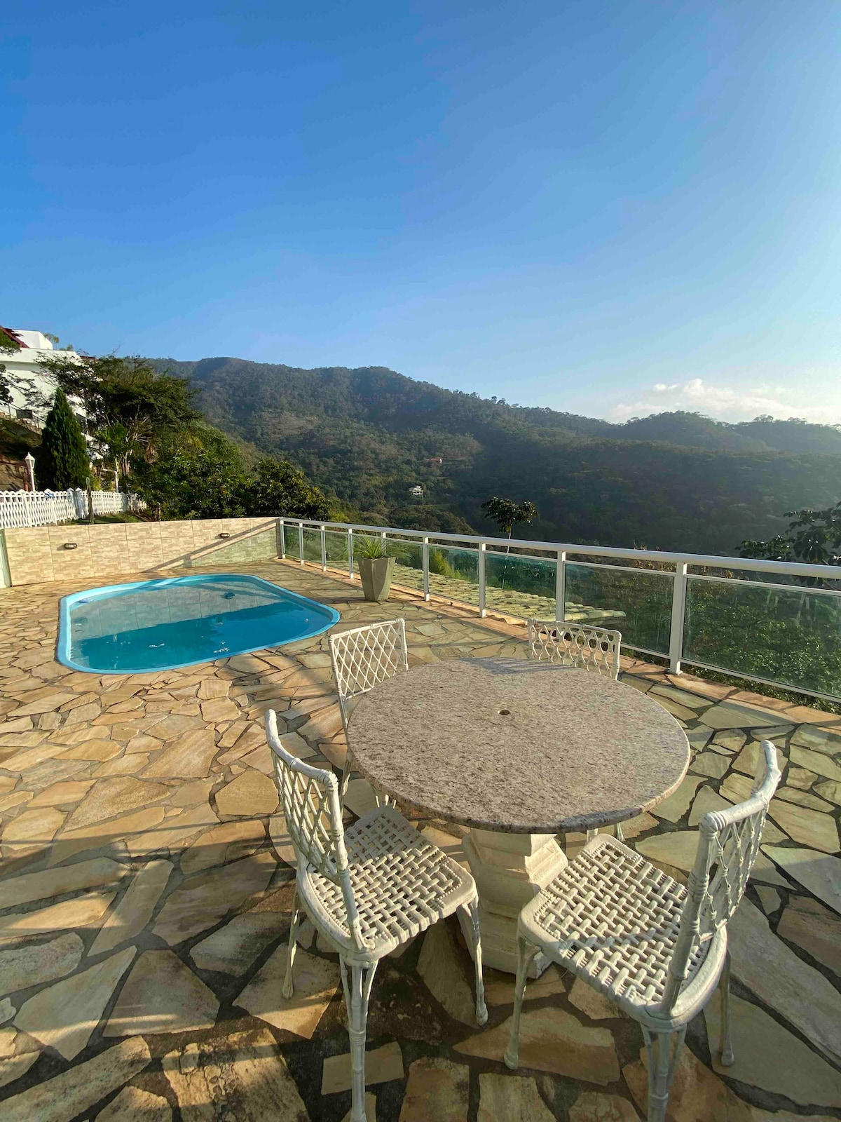 Détendez-vous dans cet espace calme et élégant. Terrasse avec vue privilégiée sur la montagne et douche extérieure, pour des raisons de sécurité, nous n'acceptons pas les enfants. Cuisine complète et intimité totale. Nous sommes une propriété de culture de produits biologiques. Nous produisons des mûres et des framboises. Venez vivre cette expérience. Nous sommes proches de Vale das Videiras, Paty de Alferes et Miguel Pereira.