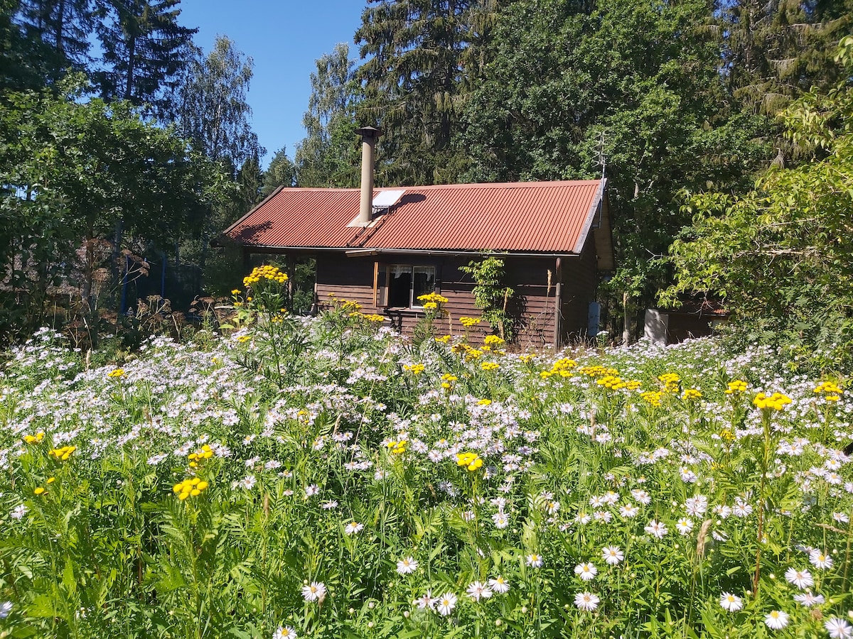 Chalet récemment rénové avec grand terrain ensoleillé toute la journée avec joli coucher de soleil. Terrasse en bois et patio vitré. Le charbon de bois et le barbecue à gaz sont disponibles. La zone de baignade avec une petite plage de sable et des rochers est accessible à pied depuis le chalet (2 minutes). Magnifique cadre naturel pour marcher/faire des randonnées et être à l'extérieur. Plusieurs plages et terrains de golf sont situés dans les environs.