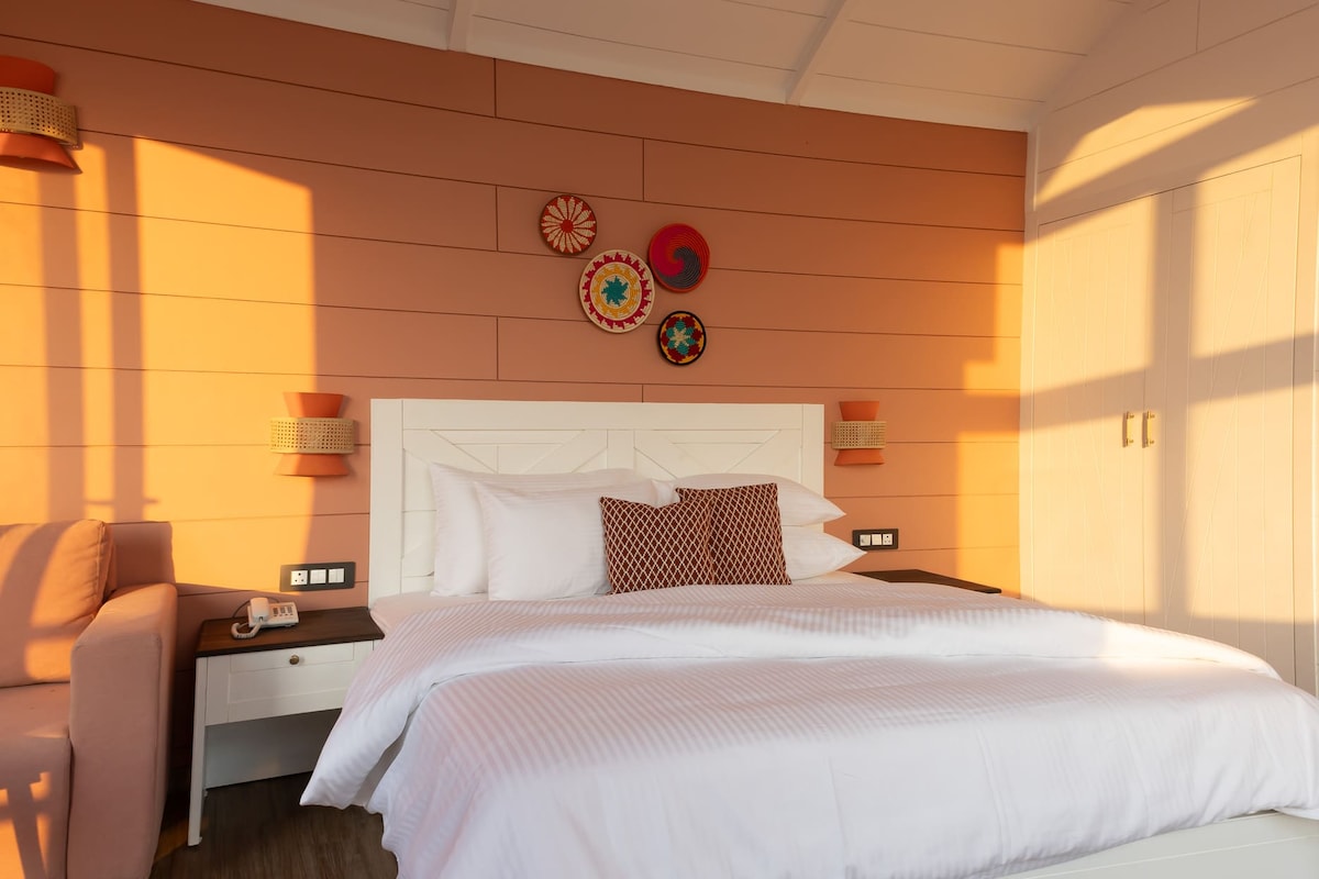 Découvrez le luxe de 1 500 pieds carrés 2BHK avec deux chambres principales, chacune avec une salle de bains privative, un salon élégant et une cuisine entièrement équipée. Profitez d'un immense balcon avec une vue panoramique à 270 degrés sur le Ganga, parfait pour se détendre. La suite comprend des équipements modernes comme la climatisation, des téléviseurs et un purificateur d'eau RO. Nous avons 7 2bhk identiques avec les mêmes équipements , donc on vous proposera l'un d'entre eux . Pas le moindre , l'établissement se trouve à l'intérieur de l'Aloha Resort haut de gamme avec une pléthore d'équipements .