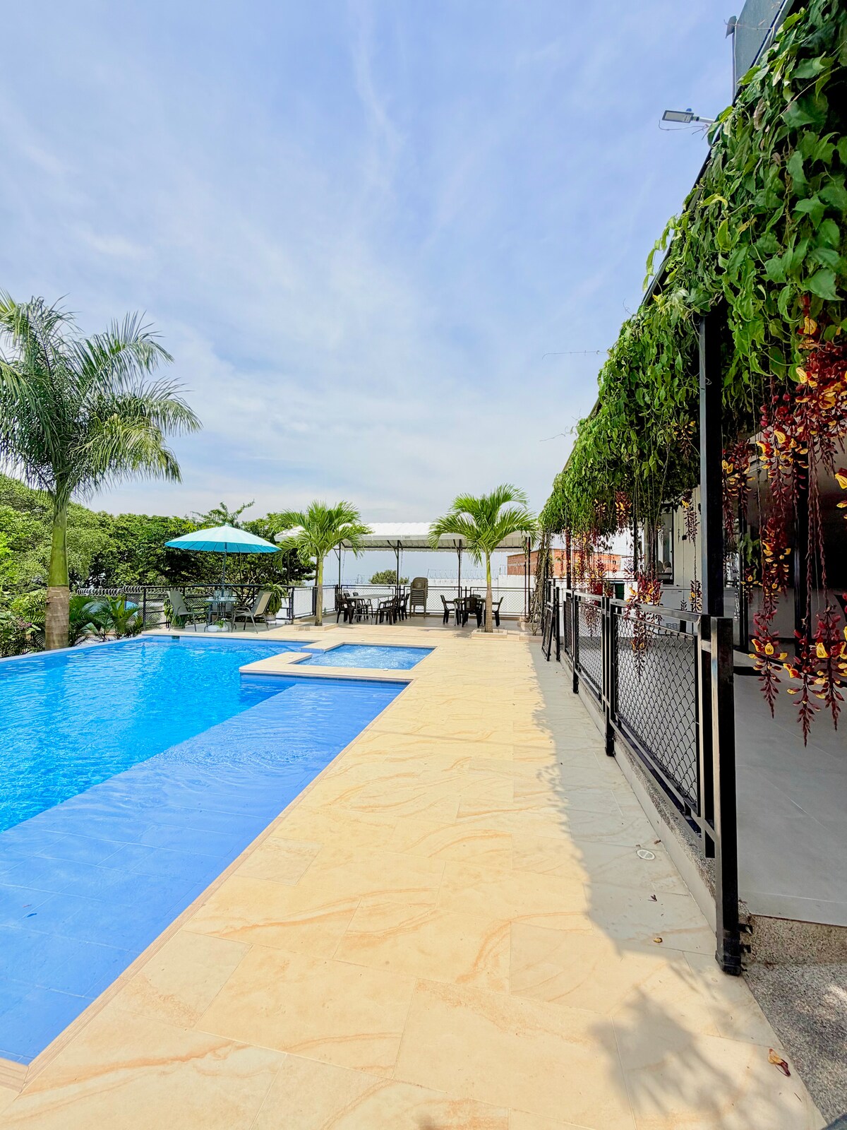 Détendez-vous avec toute la famille dans ce logement où la tranquillité se respire dès votre arrivée. La maison SELAH est à seulement 25 minutes de la ville de Neiva, située dans la belle municipalité de l'ULLOA -Huila, où vous pourrez profiter d'un excellent climat, de beaux couchers de soleil et d'une vue sur la montagne depuis notre belvédère situé au 3e étage de la propriété. Prépare-toi à te détendre dans la piscine et le jacuzzi avec ta boisson préférée, accompagné de tes proches.