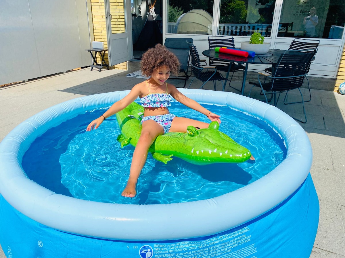 Terraced house 1½ hours from the airport and 1 hour from Copenhagen central station (both measured by public transport). Playground and soccer field on common areas among lots of fruit and berry trees/bushes. We have a pet dwarf rabbit living in our garden as well you can play with. Please remember to feed it - it takes 1 min/day and we will of course tell you what you need to do. NB we live with neighbours closeby with no hedges between, so please respect their privacy.