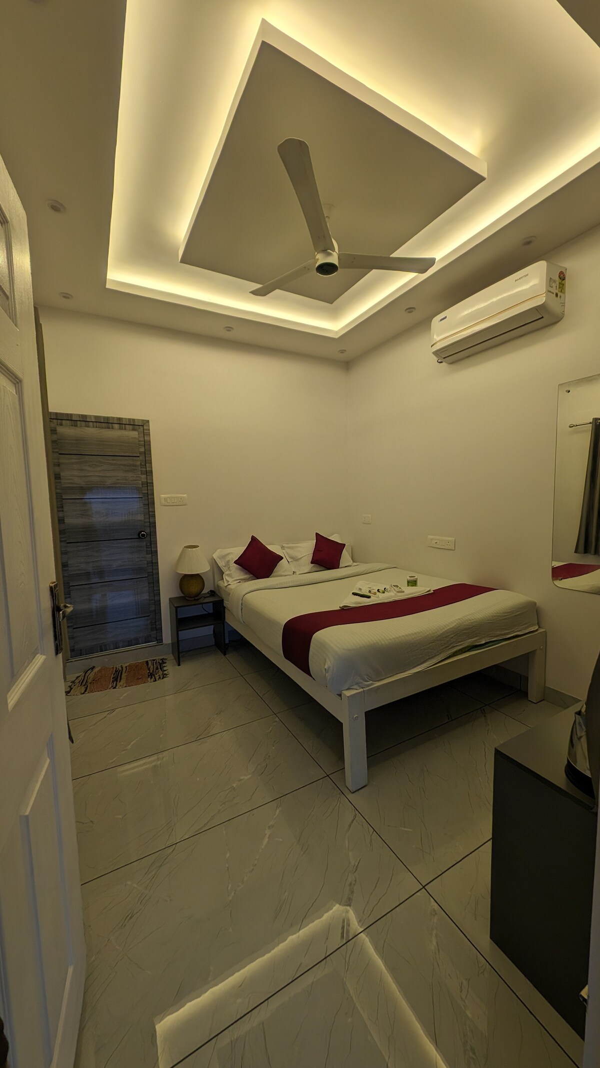 Cet appartement meublé de 51 mètres carrés est situé au deuxième étage. L'appartement dispose d'un salon spacieux, d'une kitchenette et d'une chambre climatisée avec salle de bain attenante et d'un balcon donnant sur la rue. Le petit déjeuner fourni est fait maison et traditionnel de la cuisine du Kerala. Notre promesse est de fournir autant de soins, de confort et de paix que vous obtiendriez dans un hôtel étoilé, avec la touche personnelle et sociable qui est synonyme de séjours à domicile.