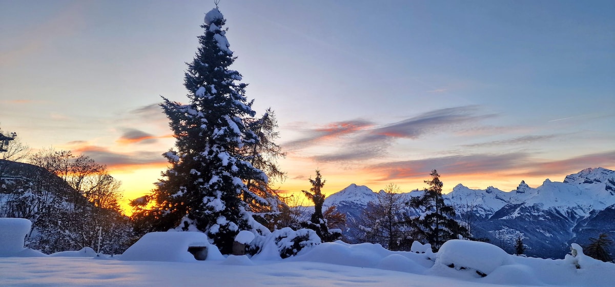 L’automne arrive ! Magnifique! Super cosy STUDIO 1 room / 30m2, idéal pour 2 personnes (possibilité de dormir à trois ) - très calme - TOUT CONFORT - Vue XXL sur les Alpes et le Cervin- Terrasse- Sunrise & Sunset - Ping Pong, Jeux. Canapé lit de luxe & matelas très confortables de 160x200 et 90x190. Parking intérieur gratuit devant le studio Food store: 700m Piscine: ferme pour entretien en basse saison. Renseignez vous! Thyon - Sion - Grande Dixance - Verbier - Zermatt