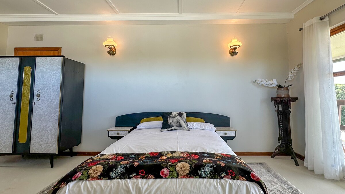 Une chambre double avec salle de douche attenante. Il y a une armoire, une télévision et une connexion Wi-Fi. La chambre mène à un bel espace clos où il y a une table à manger et des meubles de patio confortables, ici vous pouvez vous asseoir avec les portes ouvertes ou fermées et profiter de la vue magnifique. Il y a un réfrigérateur et un micro-ondes avec des installations de préparation de café et de café. À travers ces portes, il y a un grand patio avec un barbecue et des ustensiles. Les vues depuis cette chambre sont incroyables