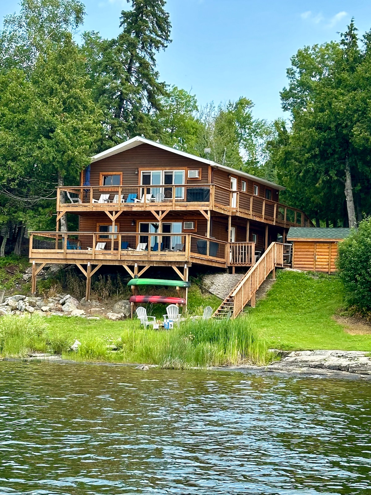 Shores of Eagle Lake offers your own private home on a world-class lake in Northwestern Ontario. The waterfront is south-facing with incredible views, all day sun and a huge deck overlooking your own private beach. The two-bedroom home includes a queen bed, a double and single bed and a double-sized pull-out sofa. Spend your days fishing in the bay, swimming off the rocks, paddle boarding or relaxing on the deck or beach.