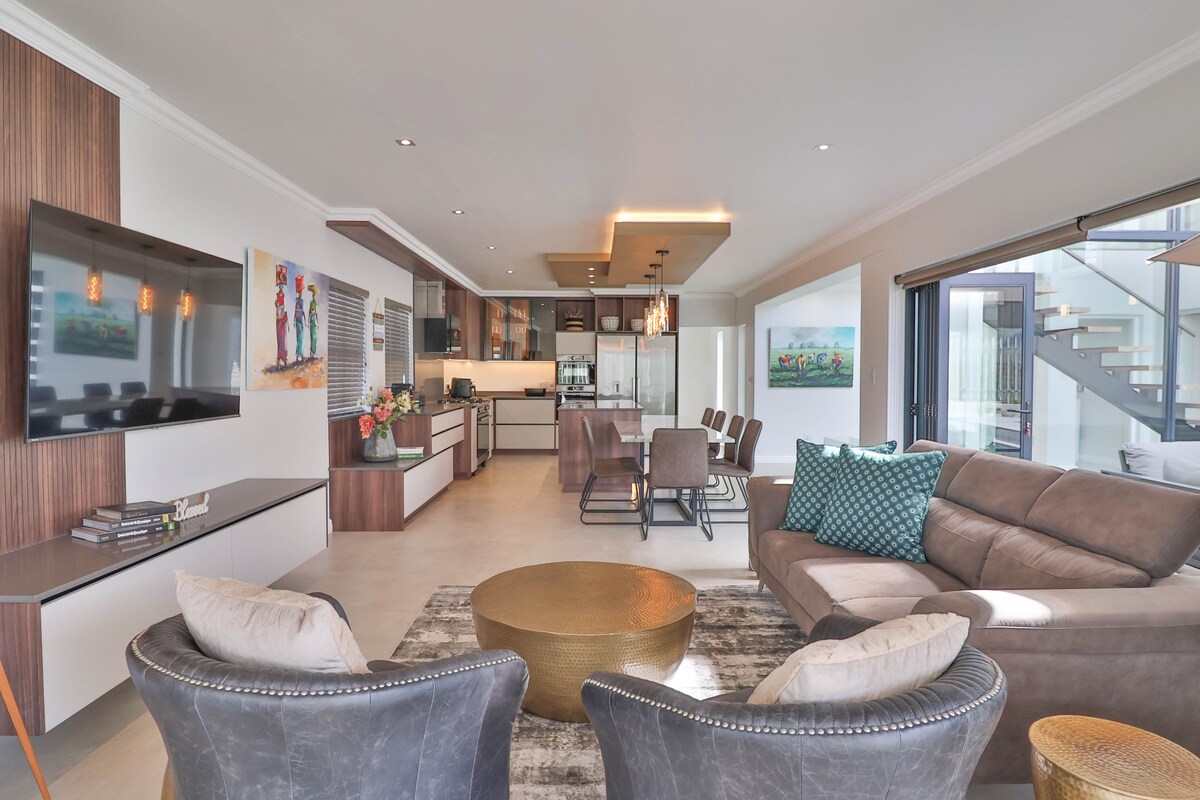 Ce chalet moderne et spacieux offre tout ce dont vous avez besoin pour des vacances parfaites ou une escapade rapide. Superbe jardin avec piscine. Salle de braai intérieure/extérieure avec salle à manger et mobilier de salon. Cuisine entièrement équipée avec cuisinière intégrée moderne, Nespresso, machine à café, lave-vaisselle, lave-linge et sèche-linge. Chambre avec lit queen size, de grands placards intégrés et une salle de bain attenante. Salon confortable. Grande télévision connectée, utilisez vos propres applications de streaming. Wifi rapide. À moins de 1 km du centre-ville et du sentier de la falaise.