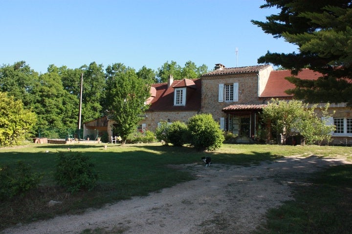 Près des rives pour la dordogne, nichée dans une vallée tranquille, avec un ruisseau qui longe la villa. Un patio couvert de vignes donne sur une piscine naturelle pour rester au frais en été. La propriété comprend un champ avec des arbres fruitiers et une colline arborée. Le chalet est un havre de paix et privé. Tout ce qui peut être entendu, c'est l'eau courante du ruisseau ou le crépitement du coin du feu pendant les mois d'hiver. Bienvenue dans votre retraite à la campagne en dordogne. X