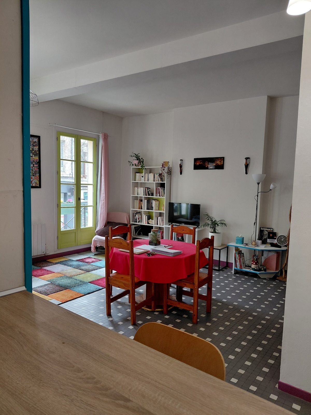 Appartement lumineux climatisé au 1er étage, accès par escalier, au coeur du village. 🛏️ Linge de maison non fourni Les couettes et oreillers sont fournies mais vous devez amener vos housses, taies et draps pour les protéger. ⏱️ Je valide les réservations en - de 5 min. -40% pour les sejours d’un mois Une chambre avec lit 2 personnes Un canapé lit 2 personnes. Lit parapluie À pied: gare sncf, boulangeries, épicerie, supérette, restaurants… Parking public gratuit en bas de l’immeuble.