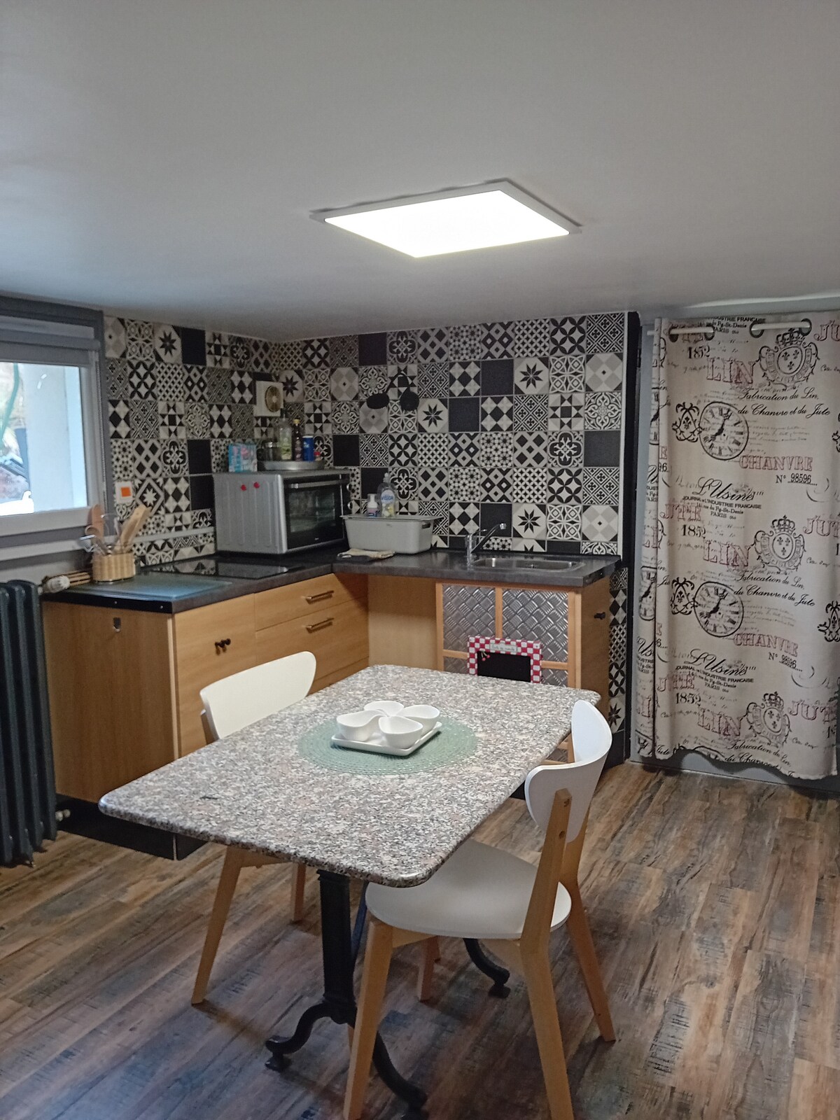 Au RDC de notre maison, STUDIO 30 m² indépendant et COSY pour 2 personnes. Une pièce destinée aux repas et à la cuisine avec tout ce dont vous aurez besoin pour préparer un repas ou petit déjeuner (Café et Thé à disposition). Une seconde pièce avec lit double, un bureau, rangements et espace salon avec TV (Accès wifi disponible). Une SDB comprenant douche à l’italienne, vasque et WC. Vues sur le jardin. Possibilité de se stationner devant la maison. Hauteur sous plafond du logement : 2m